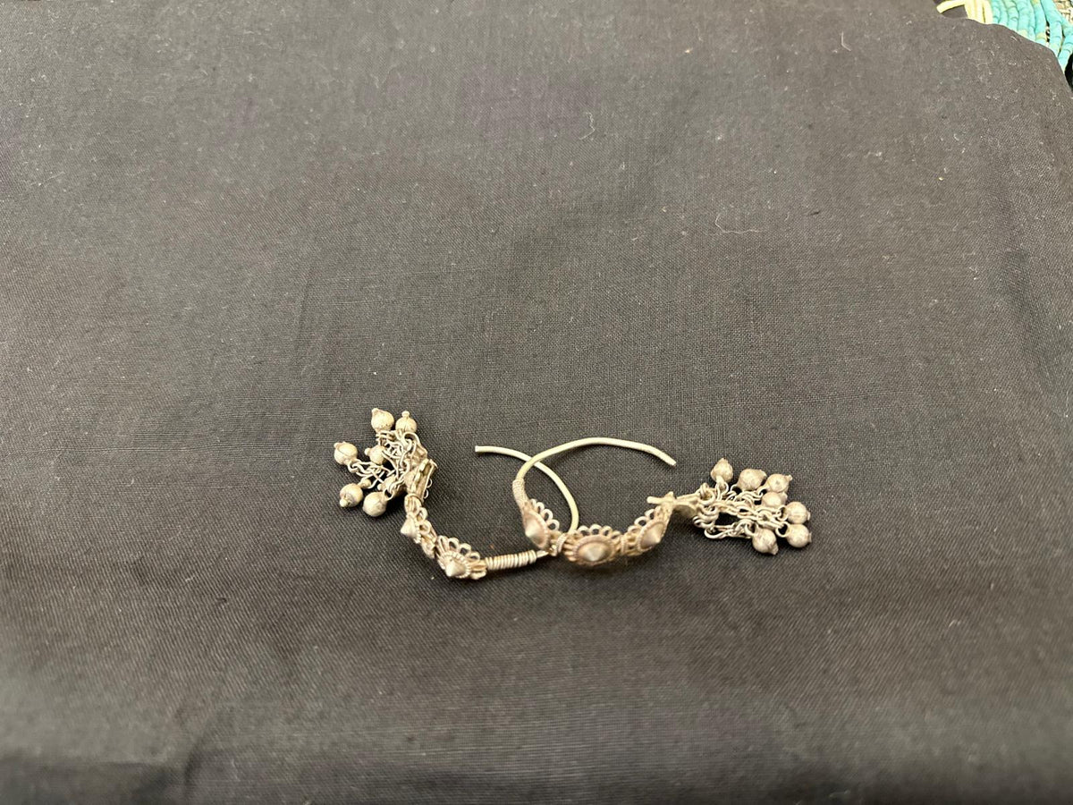 Crafted with meticulous attention to detail, the Afghani Vintage Silver Bali showcases authentic traditional silverwork known for its intricate patterns and bold design. This piece embodies rich cultural heritage, making it a distinguished addition to any collection. Its durable silver construction ensures lasting beauty and a timeless statement of craftsmanship. Perfect for connoisseurs seeking a blend of history and artistry in their jewelry.