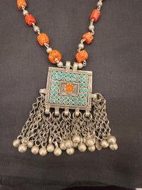 Crafted with authenticity and expert precision, this Silver Afghani Coral and Turquoise Necklace showcases vibrant coral and turquoise stones set in sterling silver. Each element reflects traditional Afghani artistry, offering a balanced fusion of cultural heritage and refined elegance. Ideal for collectors and connoisseurs, this piece enhances any ensemble with its distinctive color contrast and handcrafted detail.