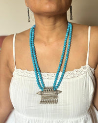 Blue Stone with Silver Antique Tabiz Pendant Necklace