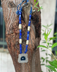 Blue Lapiz Stone with Mirror Painting Silver Necklace – A royal fusion of color and craft.